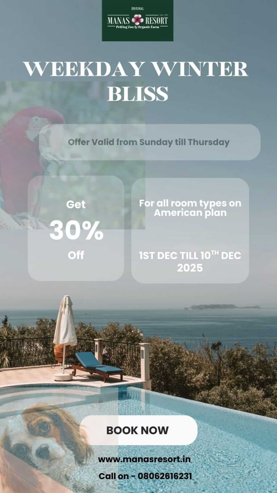 If you want to unplug from the hustle and bustle of city life, come, enjoy a getaway at Manas Resort with organic farm. That’s what adds to the unique experience of staying at our resort. The organic farm is a great way to be one with nature. It’s about enjoying the quiet of the lush green hills with the freshness of organic farming. You can take a walk through our beautiful organic farm and savor the meals cooked from the fruits and vegetables grown here. It makes the experience even more enjoyable. So, this makes for the best way to relax and rejuvenate and treat yourself to a refreshing weekend.